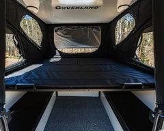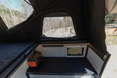 Pop the top and it's spacious as can be. With the top deployed, there's about 7 ft of headroom if you're standing and about 4 ft of headroom above the mattress. Too many campers on the market feel cramped and cluttered. The Goat is all about room to move. It's the perfect place to chill when you're out and about, whether you're on an epic overlanding adventure or just hanging with friends before the show starts at Red Rocks!