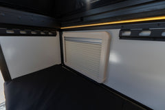 The view through the windows is however bright or dark you want it to be. The goat comes with a full set of blackout shades in the tent area, so you can catch some Z's in as close to pitch black as can be, or hide your reading lights if you're stealth camping. The windows in the camper body are really top-notch. They're insulated, dual-pane polycarbonate glass with adjustable prop-rods, and a shade/bug screen system that slides up and down to give you as much ventilation or privacy as needed.