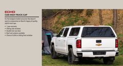 Exceptional value with all the necessities. The Ranch Echo provides all of the necessities required for a basic truck cap. With sliding side windows and a dual locking rear window, this truck top has the security and durability needed for a functional and stylish topper. 250 lb static weight limit. The HD option increases the static roof load limit to 500 lb.